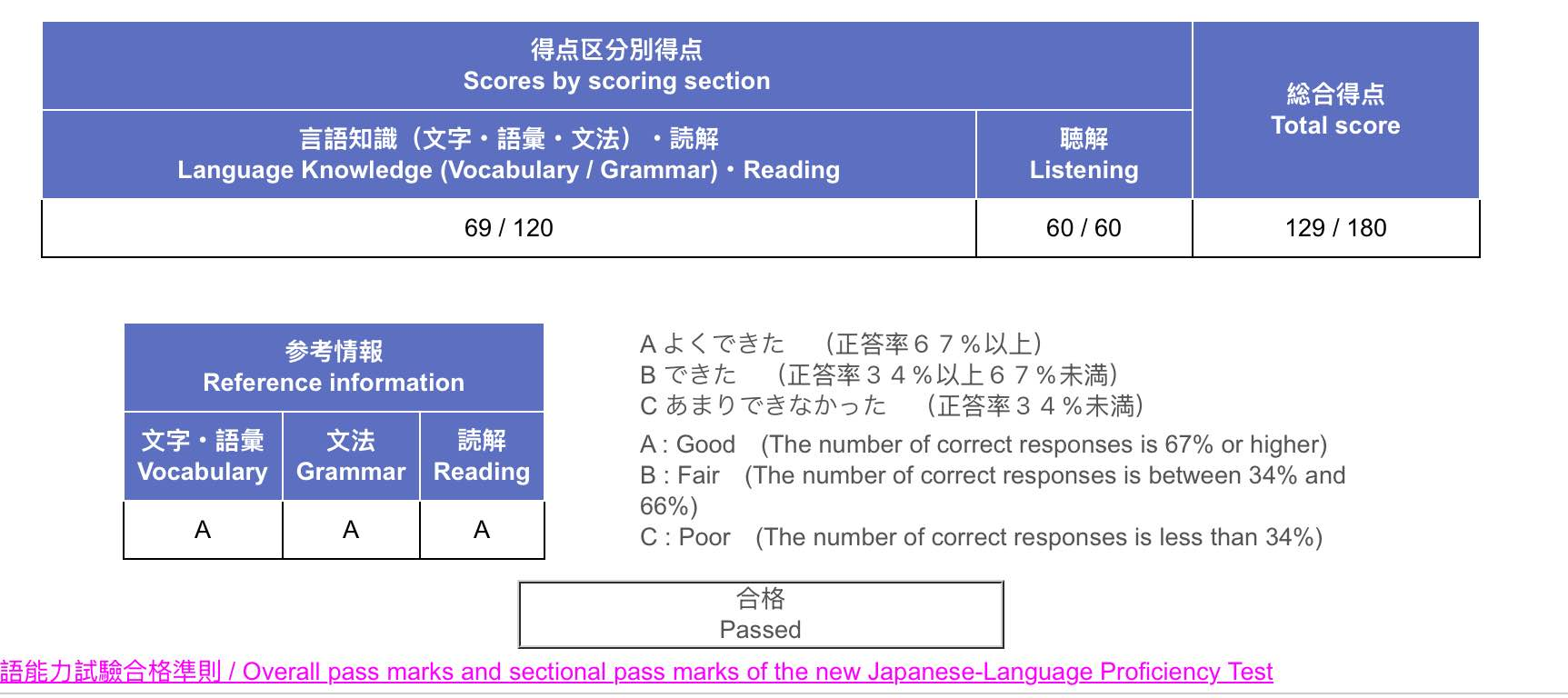 Figure 6: Official JLPT N3 Test Results