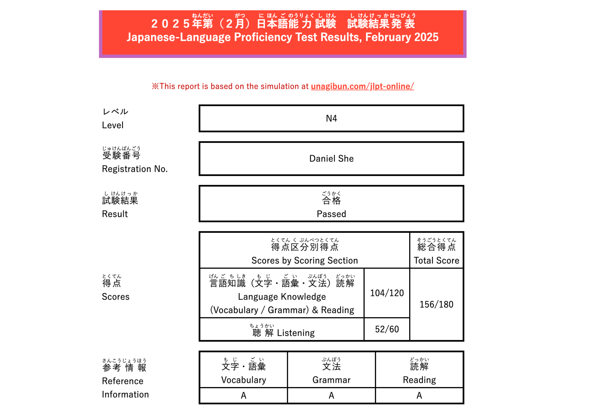 Figure 3: Official JLPT N5 Test Results