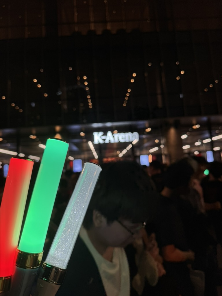 Figure 5: Me standing in front of K-Arena Yokohama, with penlights that I lost just 15 minutes later